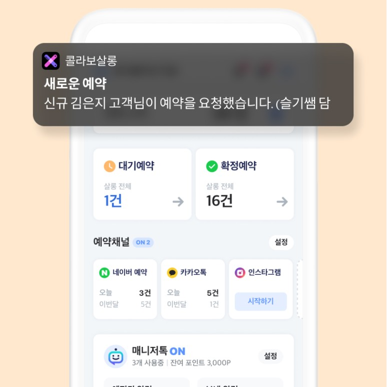 1인 미용실이나 뷰티샵 창업 후 시술, 예약 관리, 고객과 소통, 고객 정보 관리, 그리고 매출 정산까지 직접 해야할 일이 정말 많죠. 그 중 매출의 시작점이 바로 ‘예약’ 입니다.예약을 어떻게 받는 지에 따라 예약의 양이 달라지고, 매출까지 상승 시킬 수 있어요.