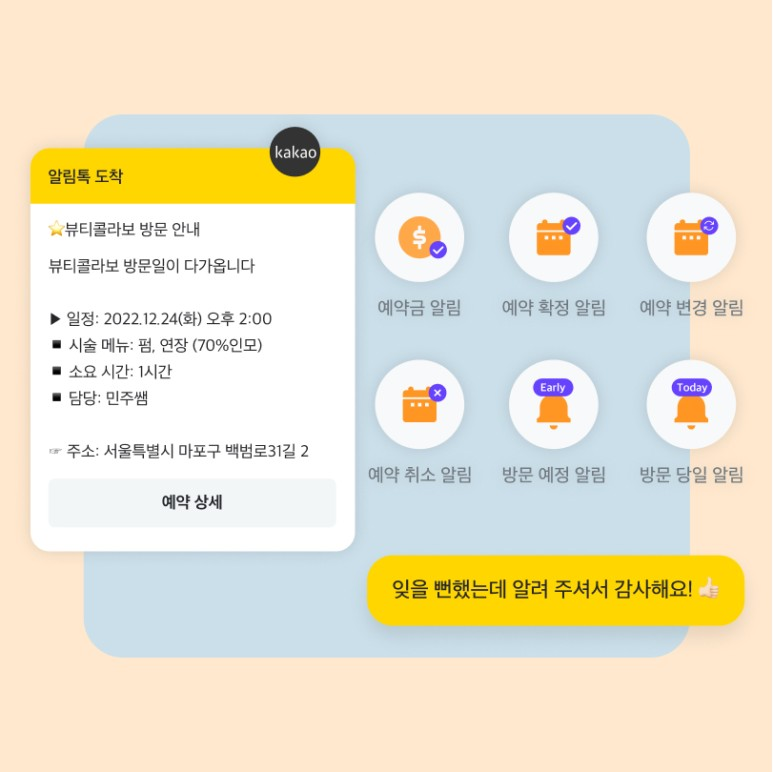 그래서 카톡 알림을 보내지 않으면 고객이 확인하지 못하고 예약 일정에 문제가 생길 수 있어요.