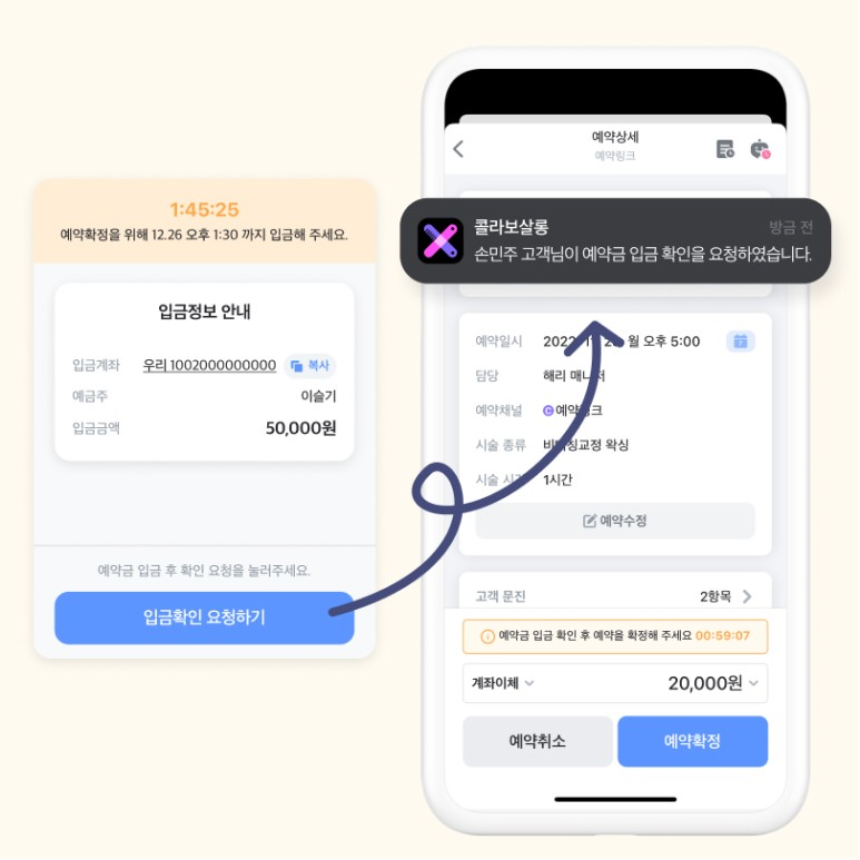 그런데 예약금을 받기 위해서도 입금 알림, 입금 정보, 입금 확인 등 신경 써야 할 일들이 많아요.